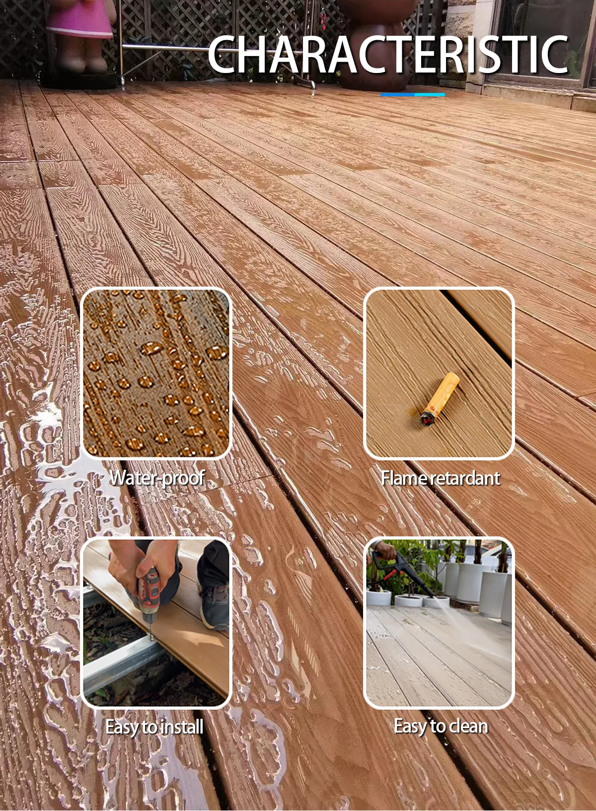 60%WOOD FIBER+30%PE+10%CHEMICAL ADDITIVES