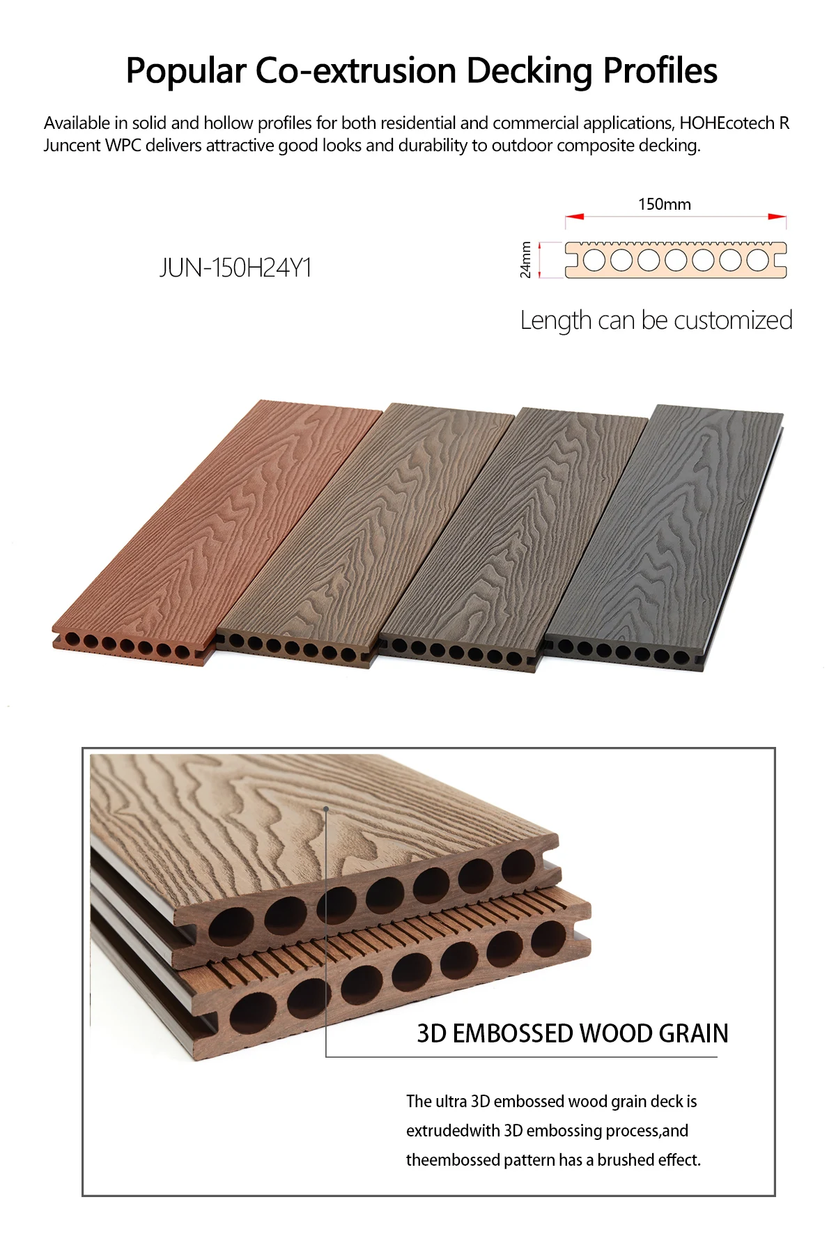Custom 3d Embossed Outdoor Wpc Decking